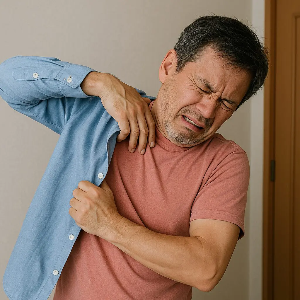 - 腕が上がらない、背中に手が回らない(可動域制限)