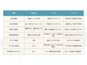浮き指・かがみ指と正常な足指の比較表