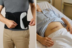 硬性コルセットは腰の動きを制限し、患部を安定させることが目的です。日中は必ず着用しますが、寝るときは外して血流を良くすることが推奨されています。コルセットの着用期間は通常3~6ヶ月ですが、個人差があります。